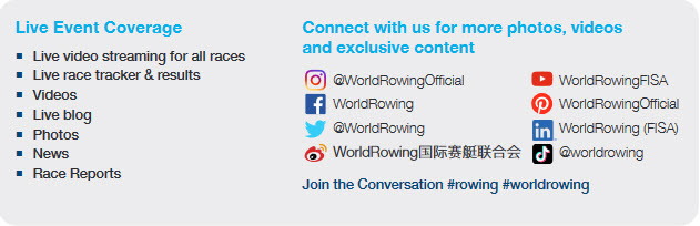 Informace z celé mezinárodní komunity veslařů, včetně elite, indoor, příbřežního veslování, kategorií do 23 a 19 let, masters a para. Nadcházející a uplynulé závody, kalendář, žádosti o pořadatelství. - NEWS